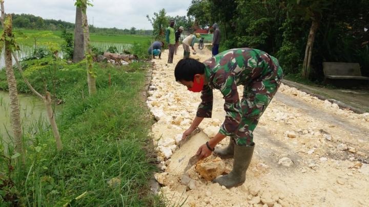 Kali ini, bersama sejumlah warga setempat, Babinsa Ngrancang Koptu Mufti melanjutkan perbaikan jalan. Hal itu juga dilakukan sebagai bentuk kepedulian terhadap wilayah binaannya.