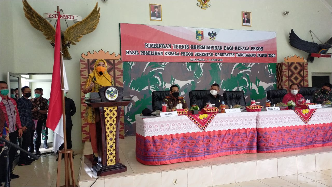 Tanggamus, etalaseinfo.com (SMSI) – Bupati Tanggamus Hj. Dewi Handajani membuka Kegiatan Bimbingan Teknis (Bimtek) Kepemimpinan Bagi Kepala Pekon Hasil Pemilihan Kepala Pekon Serentak Kabupaten Tanggamus Tahun 2021 di Aula Jenderal Sudirman, Makodim 0424 Tanggamus, Kamis (01/04/2021).