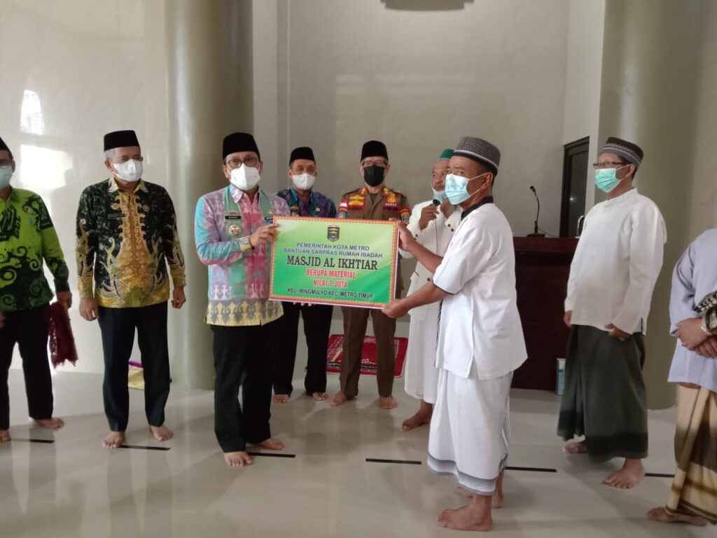 Metro, etalaseinfo.com (SMSI)- Walikota Metro, Wahdi, memberikan bantuan berupa material senilai Rp.7 juta di Masjid Al Ikhtiar, Jl. Ki Hajar Dewantara, Iringmulyo, Metro Timur (30/04). Pemberian bantuan ini termasuk dalam program 100 hari kerja penanggulangan Covid-19.