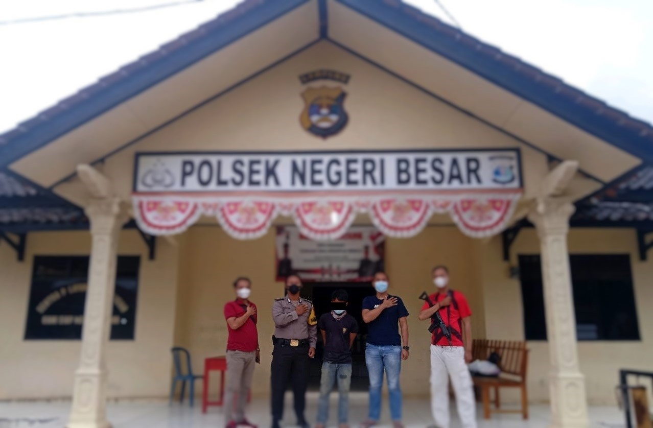 Petugas yang menerima informasi melakukan penyelidikan dan menuju ke lokasi tersebut, setelah sesampainya ditempat yang dituju, tim berhasil melakukan penangkapan terhadap pelaku tanpa perlawanan. Selanjutnya diamankan untuk dibawa ke mako Polsek Negeri Besar guna dilakukan pemeriksaan lebih lanjut.