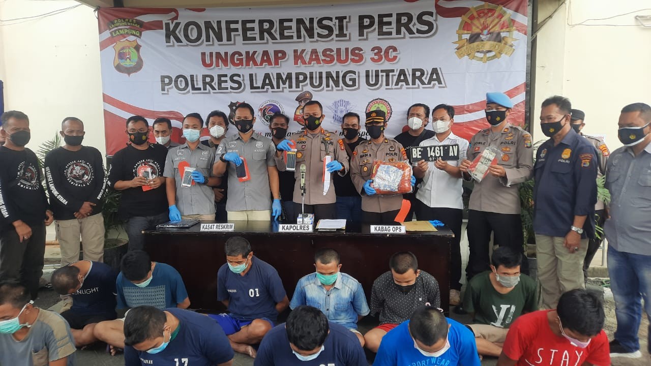 “Dari 22 tersangka yang di amankan, 2 diantaranya inisial HS (30) warga desa Surakarta Kecamatan Abung Timur dengan kasus curas begal dan FI (22) warga Desa Panca warna Kec Selagai Lingga Kab. Lamteng kasus curas mobil rental dilakukan tindakan tegas terukur karena melakukan perlawanan aktif saat akan di tangkap.” kata AKBP Bambang Yudho Martono, S.I.K., M.Si. didampingi Kabag Ops Kompol Hadi Sutomo dan Kasat Reskri AKP Gigih saat menggelar Konferensi Pers di Mapolres setempat, Rabu (30/6/2021).