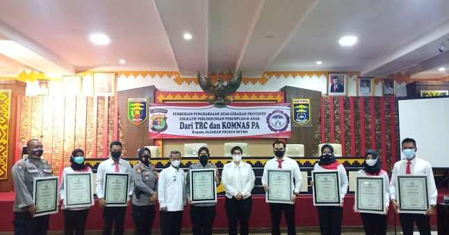 Metro, etalaseinfo.com (SMSI) – Pemberian penghargaan oleh Tim Reaksi Cepat Perlindungan Perempuan dan Anak (TRC PPA) dan Komnas Anak atas gerakan preventif dan edukatif terhadap perempuan dan anak diberikan kepada Polres Metro pada hari Rabu, 30 Juni 2021 kemarin.
