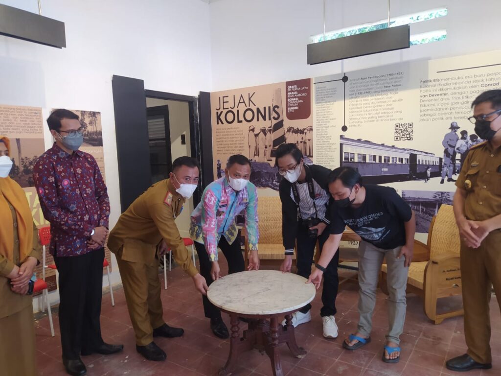 Meja koleksi keluarga tersebut diterima langsung oleh Wakil Walikota Metro Qomaru yang kebetulan tengah berkunjung ke RIS.