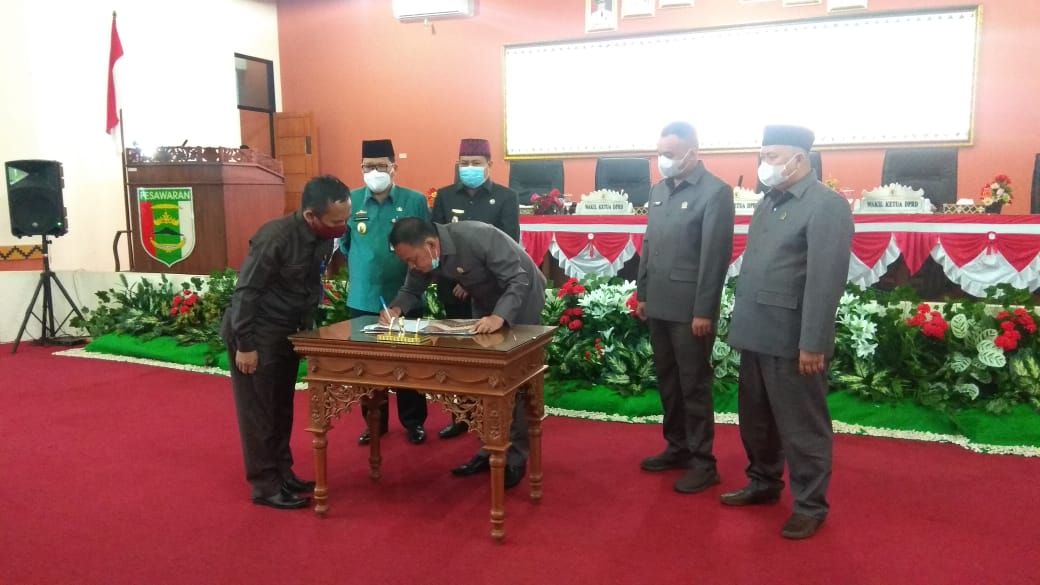 LAMPUNG1.COM, Pesawaran – Rancangan Peraturan Daerah APBD Perubahan Kabupaten Pesawaran Tahun 2020 disetujui dan disahkan Dewan Perwakilan Rakyat Daerah (DPRD) Pesawaran, dalam sidang paripurna yang berlangsung di ruang sidang DPRD setempat, Rabu (30/9/2020)