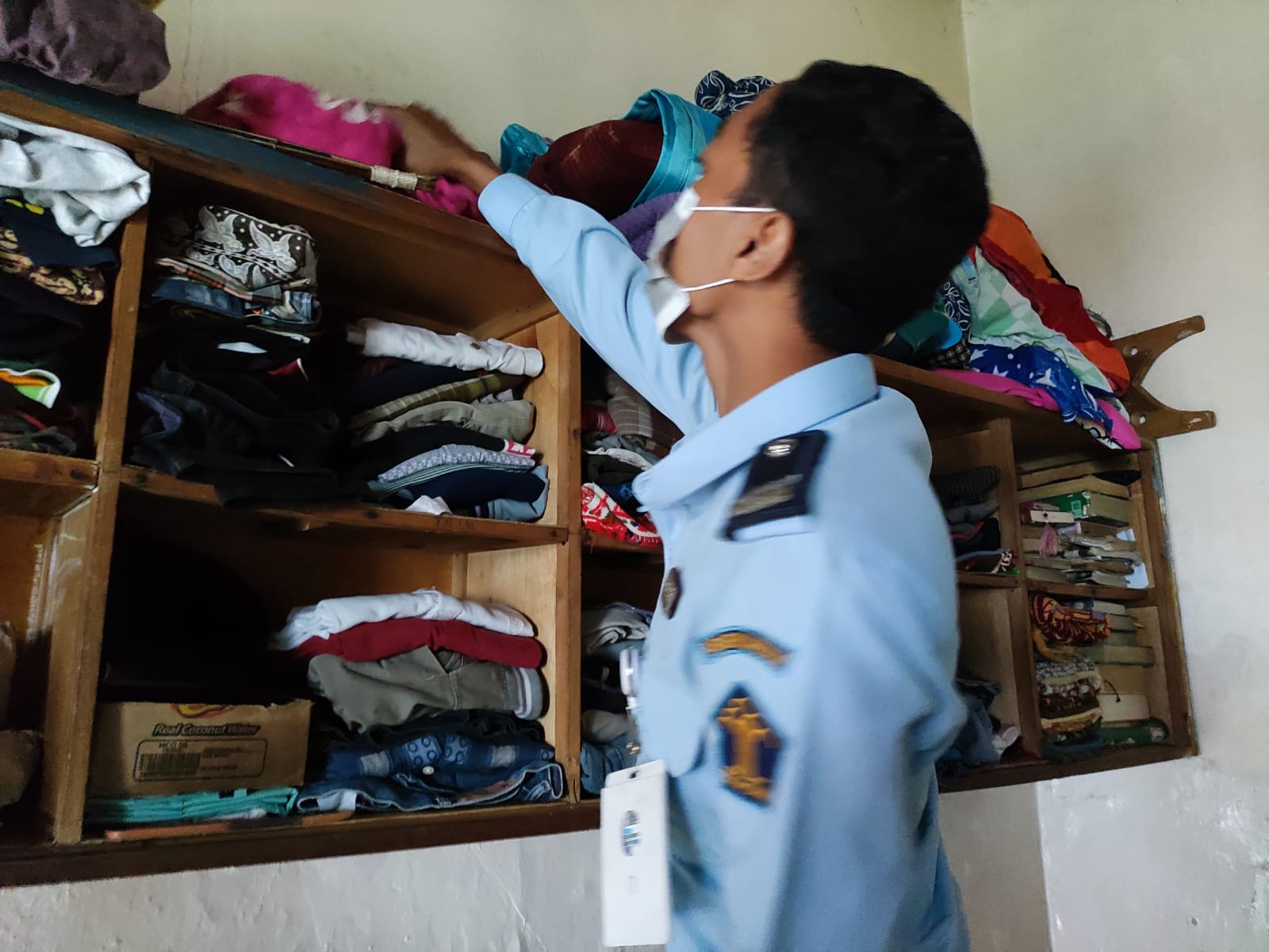 Kegiatan Penggeledahan dilakukan secara insidentil dengan memperhatikan Protokol Kesehatan Pencegahan Covid-19 yang ketat. Petugas memakai masker, menggunakan sarung tangan Latex, dan menjaga jarak.