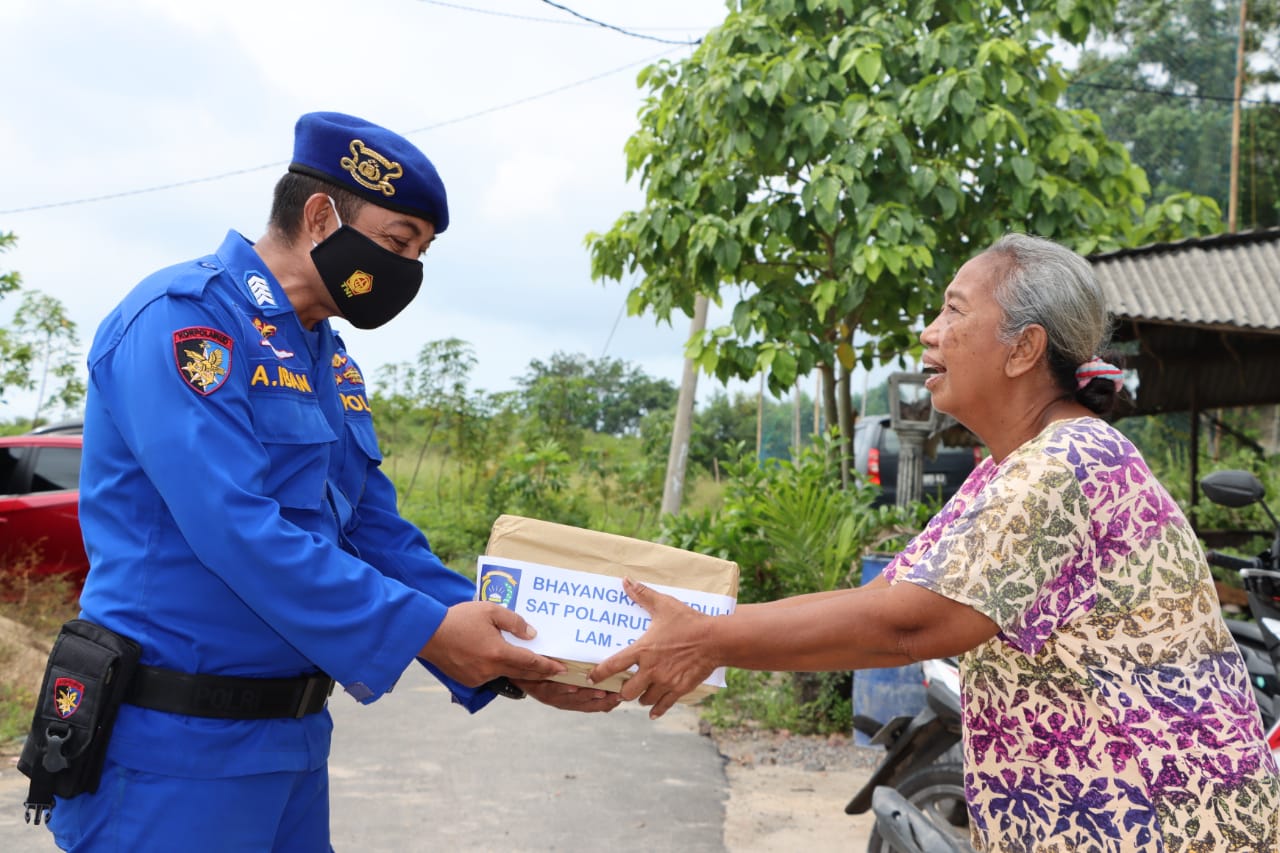 Kegiatan Baksos yang langsung dipimpin oleh Kasat Polairud Polres Lamsel Iptu Fatul Arif. S.Sos mendatangi perkampungan para nelayan dan memberikan bingkisan sembako .