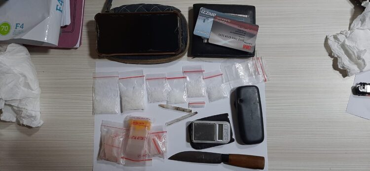 “Pada saat dilakukan penggeledahan di badan tersangak, didapatkan tujuh paket Narkotika jenis Sabu dengan berat 30,18 gram, 3 bundel plastik klip kosong, 1 buah timbangan digital dan sebilah senjata tajam jenis badik,” ujarnya.