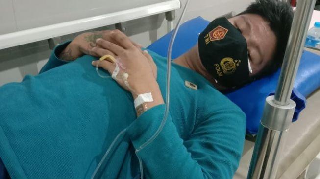 Melalui foto yang beredar di kalangan wartawan, Andika sampai harus menjalani perawatan di rumah sakit.