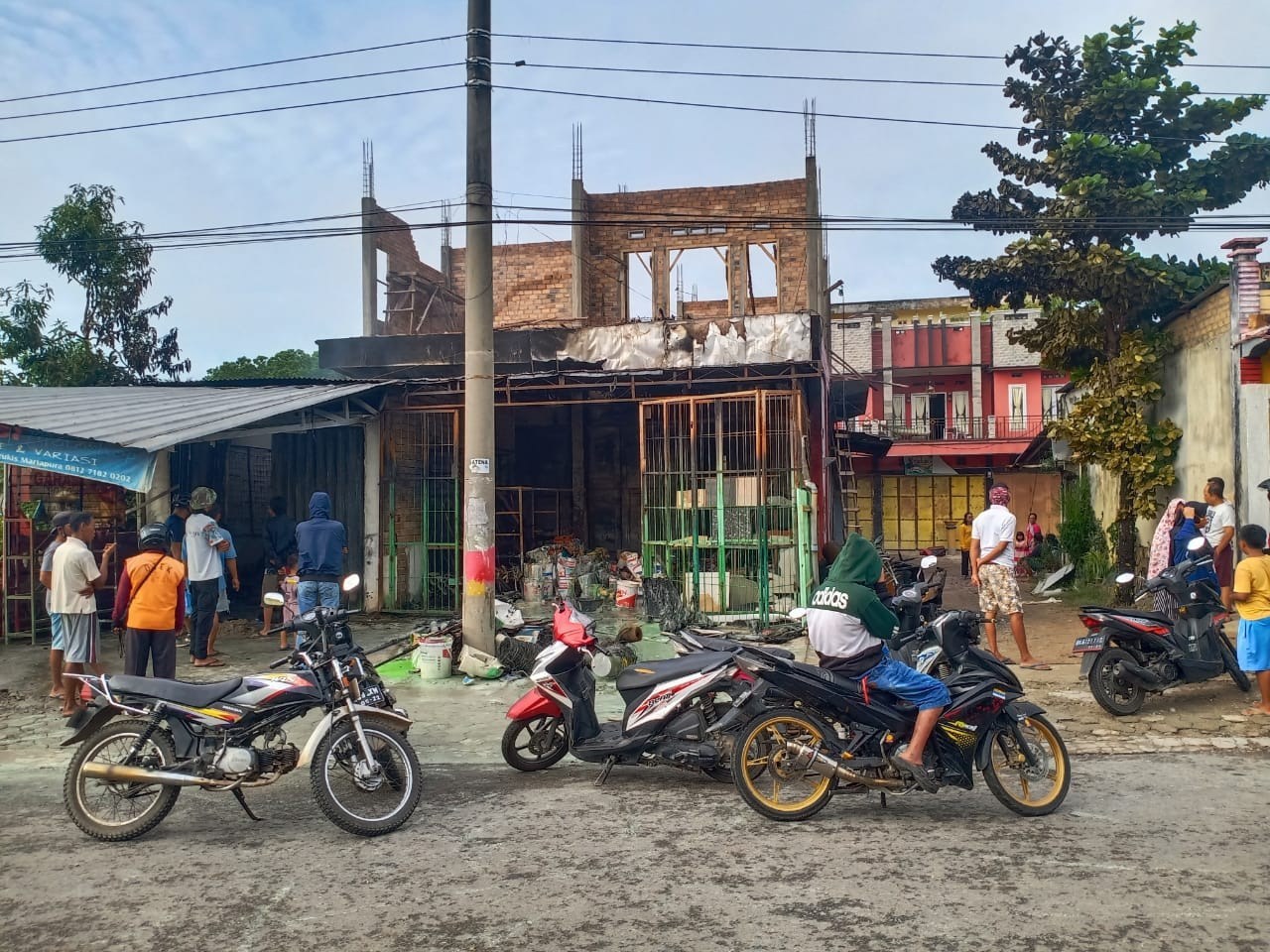 “Kabel listrik yang melintas di areal depan toko mengeluarkan percikan api terus merambat ke plastik yang ada di samping toko,” ujar Ibu Mar Buhori pemilik Toko Tirta Jaya seperti dilansir Kliksumatera.com jaringan Siberindo.co.
