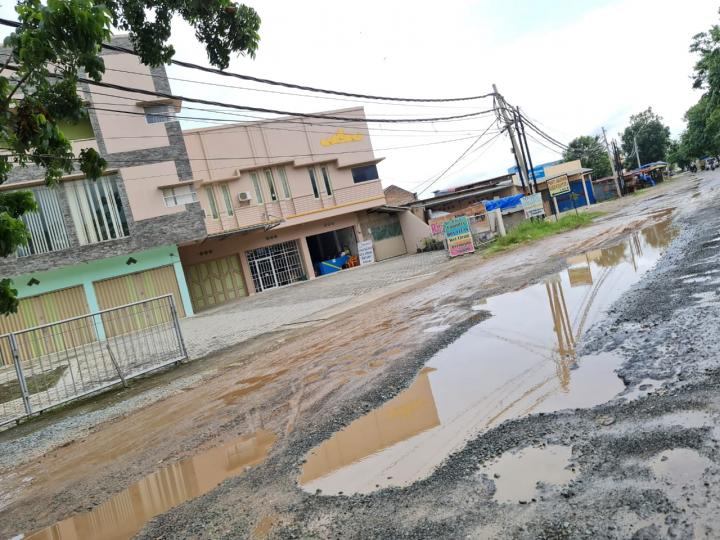 Apalagi jika turun hujan, lubang-lubang di jalan tersebut tergenang air, sehingga menghambat laju kendaraan. (*)