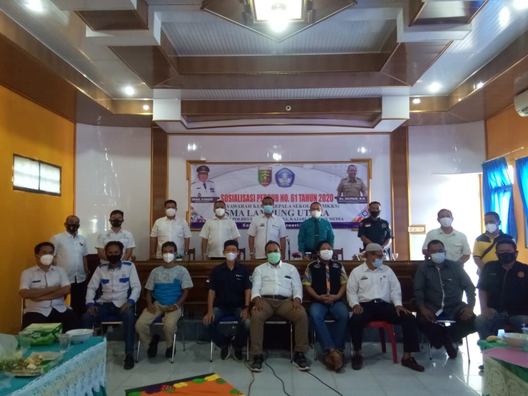 Lampung Utara (RNSI) – Musyawarah Kerja Kepala Sekolah (MKKS) Sekolah Menengah Atas (SMA) Kabupaten (Kab) Lampung Utara (Lampura) menyosialisasikan Peraturan Gubernur (Pergub) nomor 61 tahun 2020 yang dilaksanakan di aula SMA Kemala Bhayangkari Kotabumi, Rabu, 3 Februari 2021.