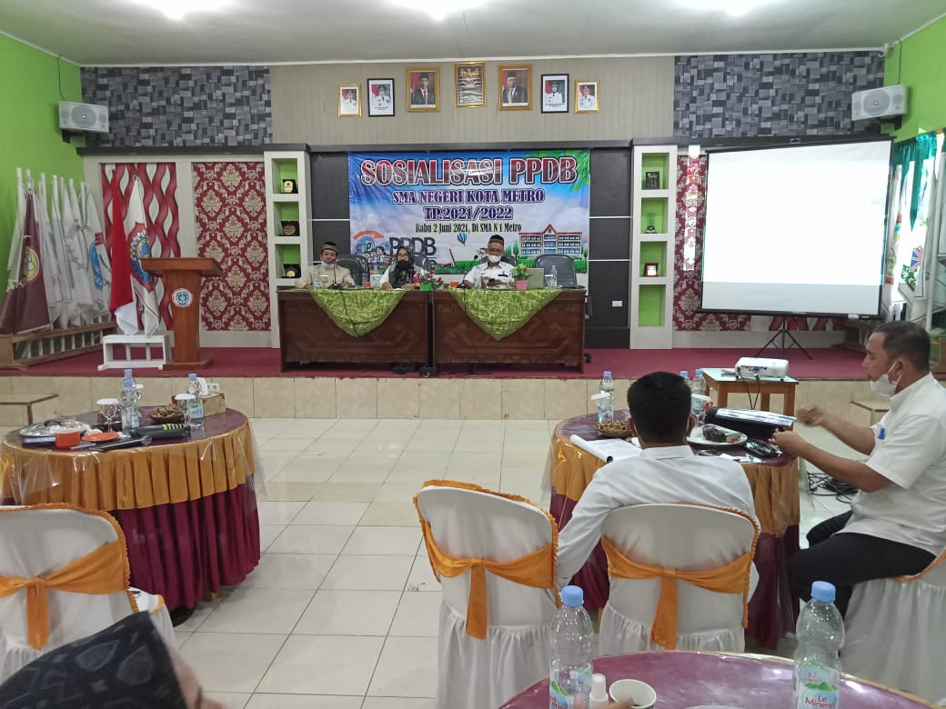 Metro, etalaseinfo.com (SMSI) – Musyawarah Kerja Kepala Sekolah (MKKS) SMA Kota Metro menggelar sosialisasi teknis Penerimaan Peserta Didik Baru (PPDB) tahun 2021, di Aula SMA Negeri 1 Metro, Rabu (02/6/21).