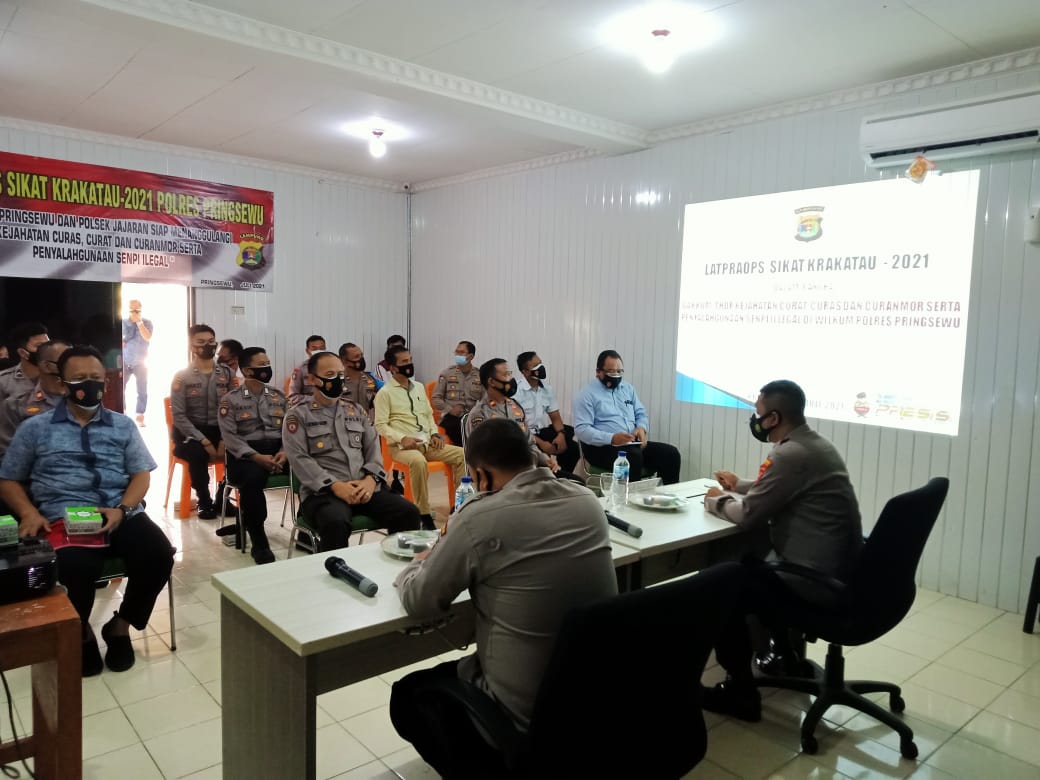 Kegiatan Latihan pra operasi (Latora ops) dipimpin langsung Kapolres Pringsewu AKBP Hamid Andri Soemantri, SIK dengan didampingi Wakapolres Kompol Leksan Ariyanto, SIK dan dihadiri oleh para PJU serta seluruh anggota Polres pringsewu yang terlibat dalam Ops Sikat Karakatau 2021
