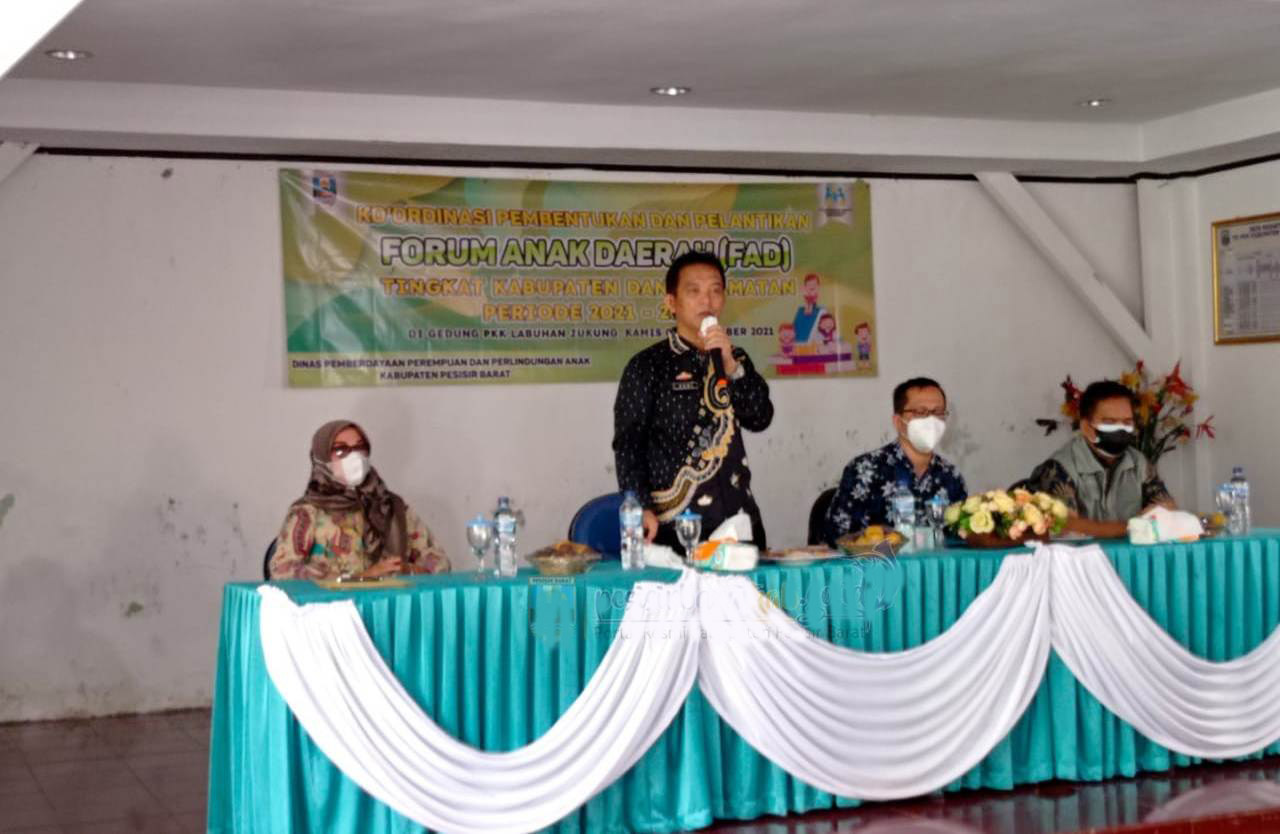Pesisir Barat, etalaseinfo.com (SMSI) – Pemkab Pesisis Barat melaksanakan acara Pembentukan dan Pelantikan Duta Anak Forum Anak Daerah (FAD) Periode Tahun 2021-2023, Kamis, 02 September 2021.