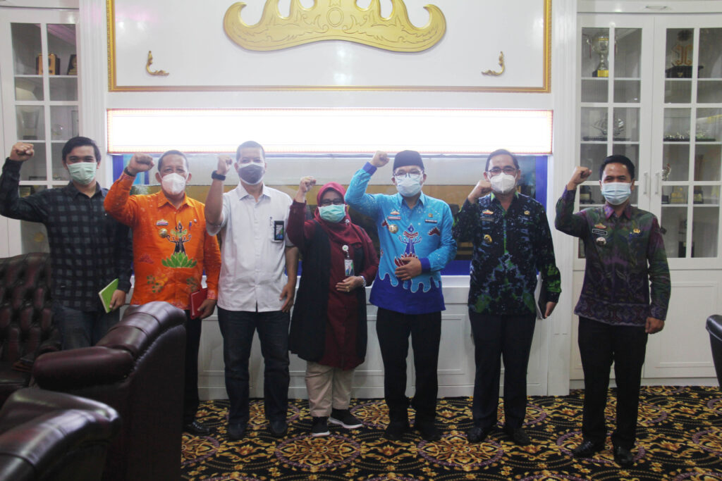 Metro, etalaseinfo.com (SMSI) – Walikota Metro didampingi Asisten II dan Kepala Dinas Tenaga kerja dan Trasmigrasi Kota Metro menyambut kedatangan Kepala Badan Penyelenggara Jaminan Sosial (BPJS) Ketenagakerjaan di Ruang Kerja Walikota Metro, Jumat (3/9/2021).