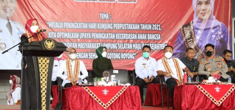 Hal itu diungkapkan Bunda Winarni dalam acara Hari Kunjung Perpustakaan dan Bulan Gemar Membaca serta Pengukuhan 17 Bunda Literasi Tingkat Kecamatan se-Kabupaten Lampung Selatan yang dipusatkan di Lapangan Tenis Indoor, Kalianda, Rabu (3/11/2021).