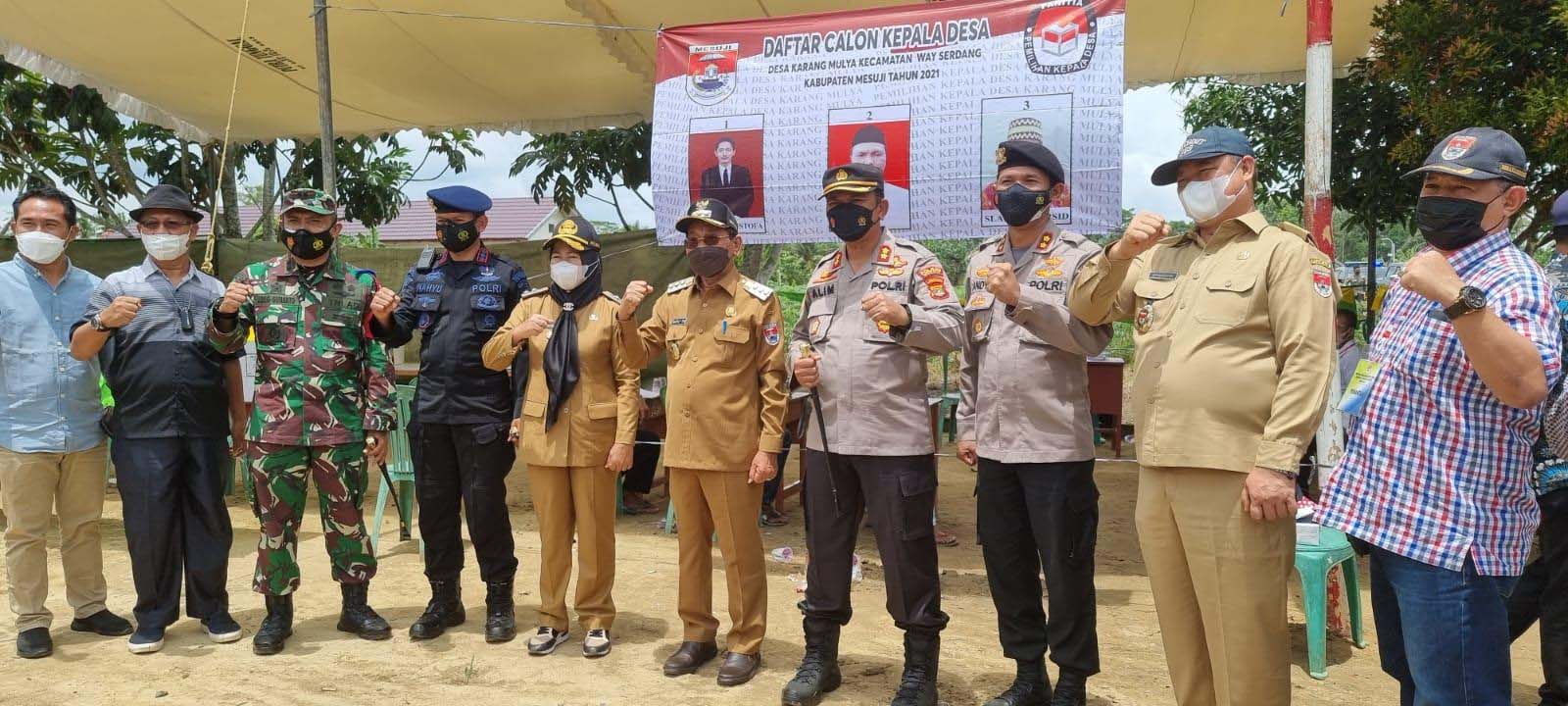 Mesuji, etalaseinfo (SMSI) – Jajaran Polres Mesuji telah selesai melaksanakan Pengamanan Pilkades Serentak di 57 Desa dalam 7 Kecamatan. Pesta yang di gelar Pada Hari Senin Tanggal 01 November 2021 Kemarin berjalan Aman, Damai, Sejuk dan Kondusif. Semua tidak lepas dari kerjasama berbagai pihak, baik dari Jajaran Polri, TNI, Satpol PP, Linmas dan Masyarakat.