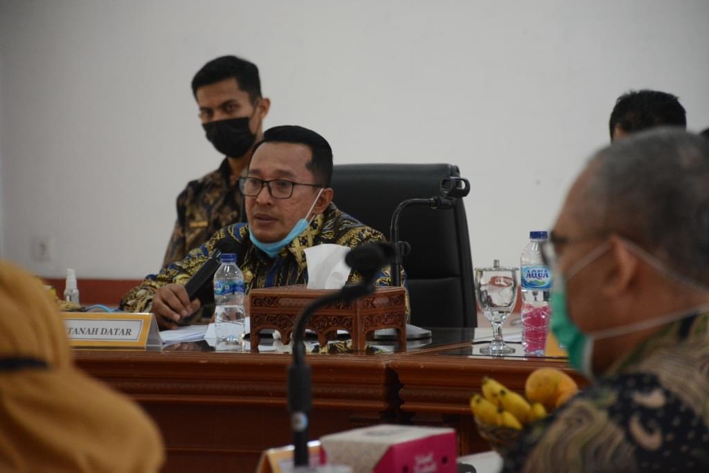 Saibumi, Tanah Datar- Aula eksekutif Kantor Bupati Tanah Datar mendadak hening ketika Rapat Koordinasi Pembangunan Daerah yang dihadiri Bupati, Wakil Bupati, Sekda, dan seluruh pejabat di Kabupaten Tanah Datar, Kamis (4/3/2021). Ini terjadi ketika Bupati Tanah Datar menceritakan penderitaan sebuah keluarga yang sampai tidak makan karena terjerat rentenir.