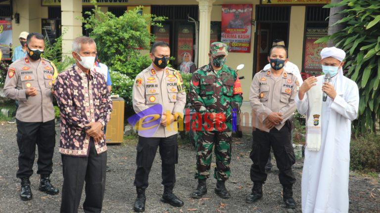 Sambutan Kapolres “ Saya berterima kasih kepada seluruh unsur Uspika, para kepala Kampung, Tokoh Masyarakat, Tokoh adat dan Tokoh Agama atas Partisipasinya dengan dimulainya Pembangunan Mushola di Polsek Way Pengubuan.