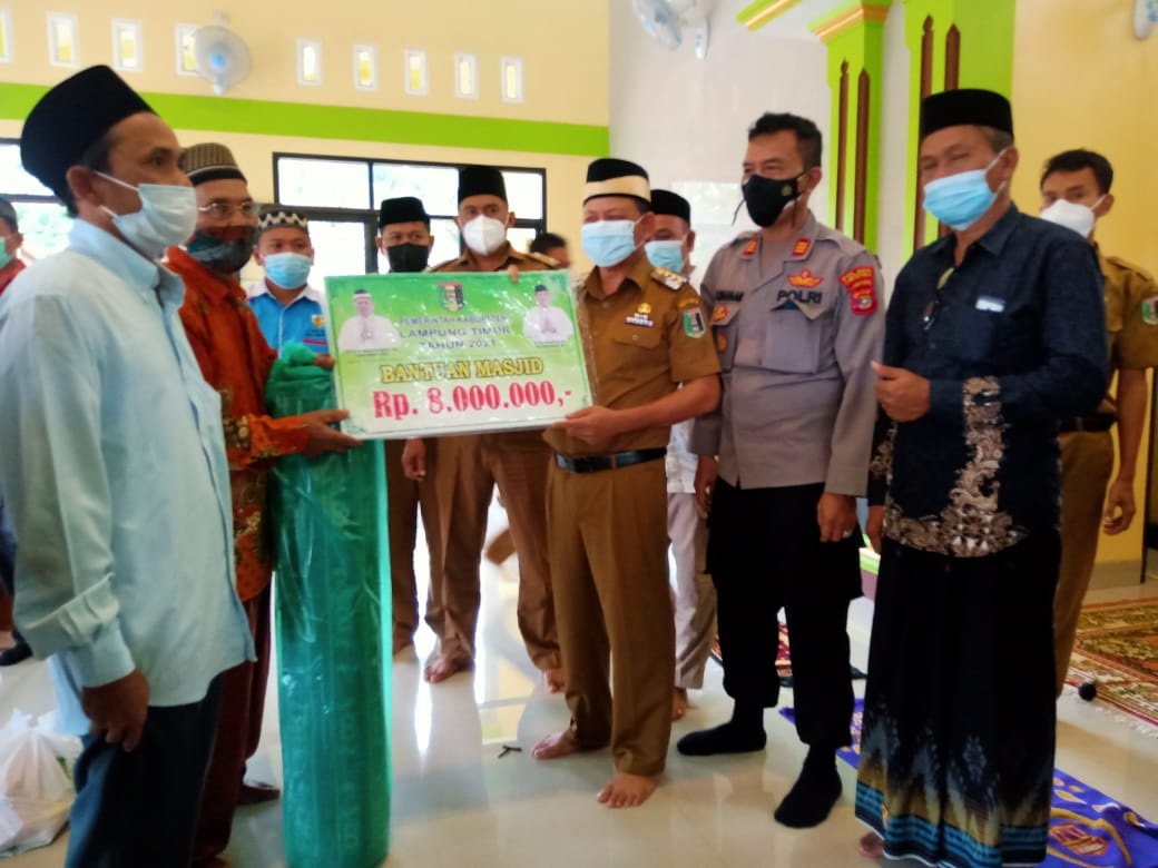 Gunung Pelindung, etalaseinfo.com (SMSI) – Bupati Lampung Timur, M.Dawam Rahardjo Menghadiri Penyerahan Bantuan dan Santunan Pemkab Lampung Timur Tahun 2021 di Masjid Nurul Iman, Dusun 6 Desa Negeri Agung Kecamatan Gunung Pelindung, Senin (03/05/ 2021)