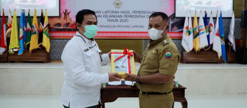 Penghargaan itu diterima langsung oleh Bupati Lampung Selatan H. Nanang Ermanto didampingi Ketua DPRD H. Hendry Rosyadi, SH, MH, dari Kepala Perwakilan BPK RI Provinsi Lampung Andri Yogama, SE, MM, Ak., CSFA di Gedung Utama BPK RI Perwakilan Provinsi Lampung di Bandar Lampung, Senin (03/5/2021).