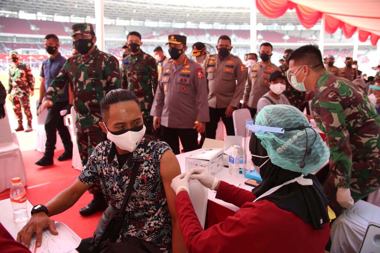 “Kegiatan vaksinasi di Stadion Utama Gelora Bung Karno dilaksanakan dari tanggal 3 sampai dengan 4 Juli 2021. Dengan target vaksinasi sebanyak 20.000 orang masyarakat umum,” kata Sigit dalam tinjauannya.
