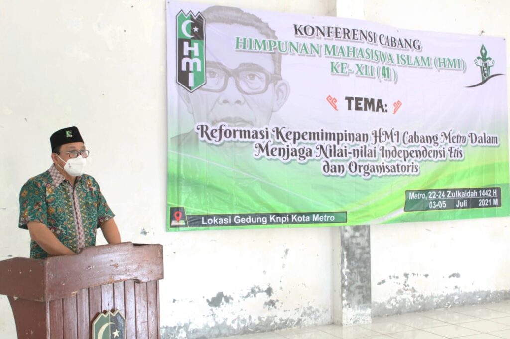 Metro, etalaseinfo.com (SMSI) – Walikota Metro Wahdi menghadiri Konferensi Cabang HMI ke-41, yang mengusung tema Reformasi Kepemimpinan Himpunan Mahasiswa Islam (HMI) cabang Metro dalam menjaga nilai-nilai Independensi Etis dan Organisatoris, di Gedung KNPI Metro, Sabtu (03/06/2021).