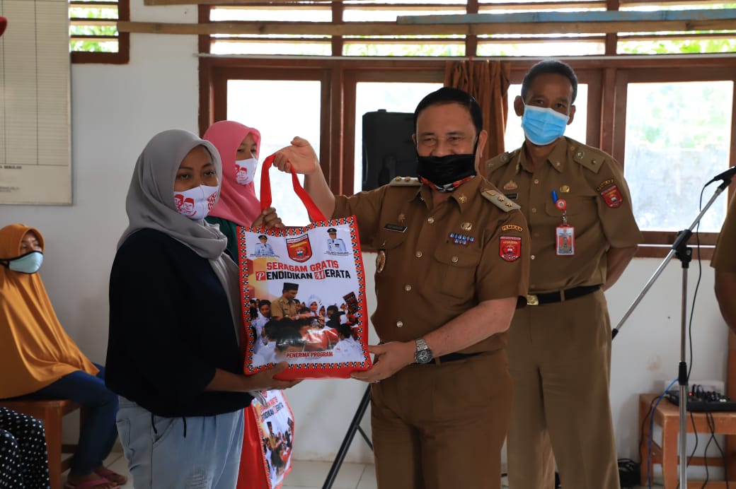 Penyerahan Sragam Sekolah Gratis Ini diberikan kepada Peserta Didik Baru SD/MI dan SMP/MTs Tahun Pelajaran 2020-2021 se-Kabupaten Lampung Barat baik untuk sekolah swasta maupun negeri yang sudah memasuki tahun ke tiga dibawah kepemimpinan Bupati Parosil dan Wakil Bupati Mad Hasnurin.