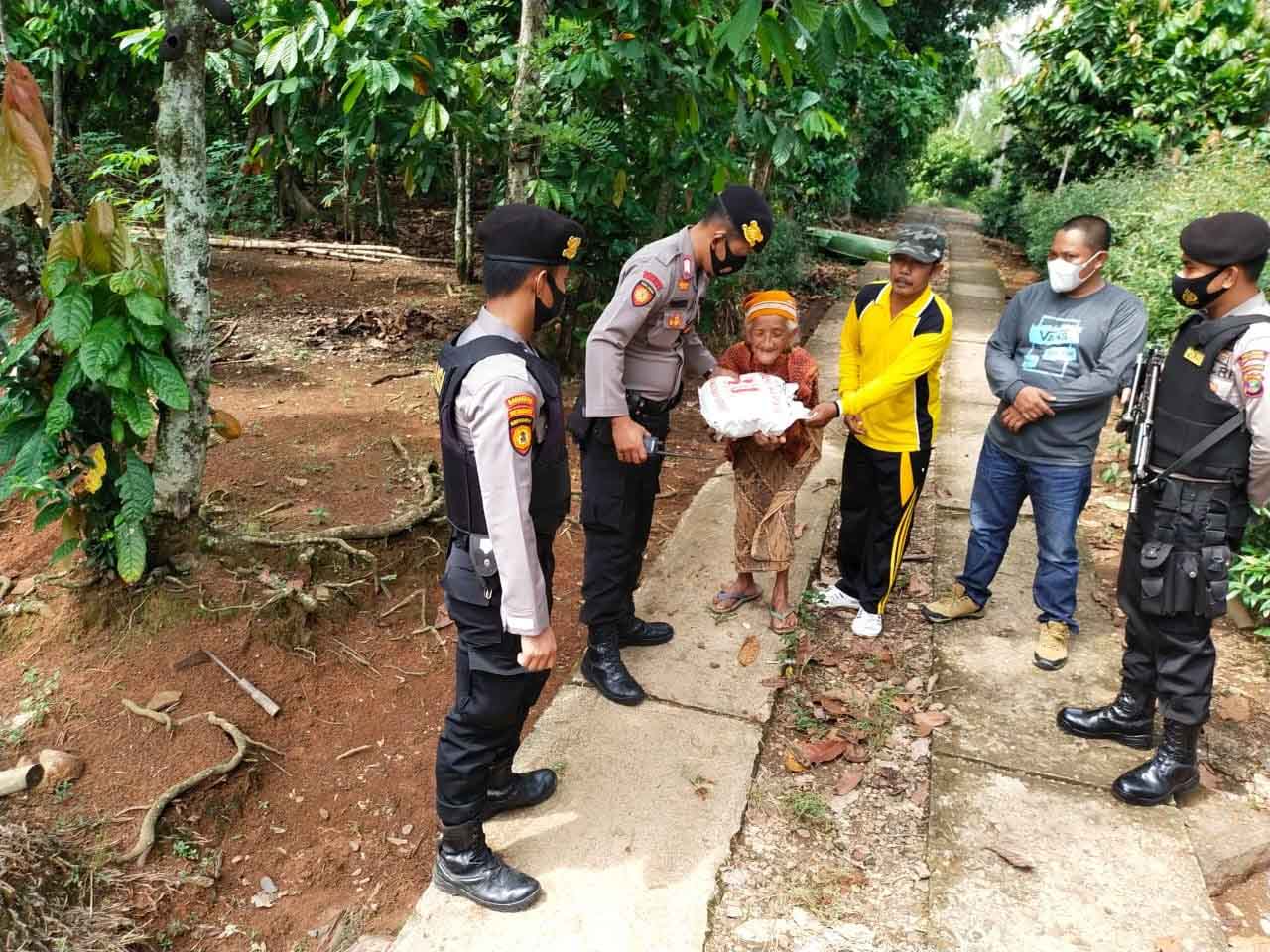 Way Kanan, etalaseinfo.com (SMSI) – Kanit Turjawali Bripka Didik Prabowo bersama empat personil Satsabhara Polres Way Kanan membagikan bantuan sosial terhadap warga terdampak pandemi Covid-19. Sabtu (4/9/2021).