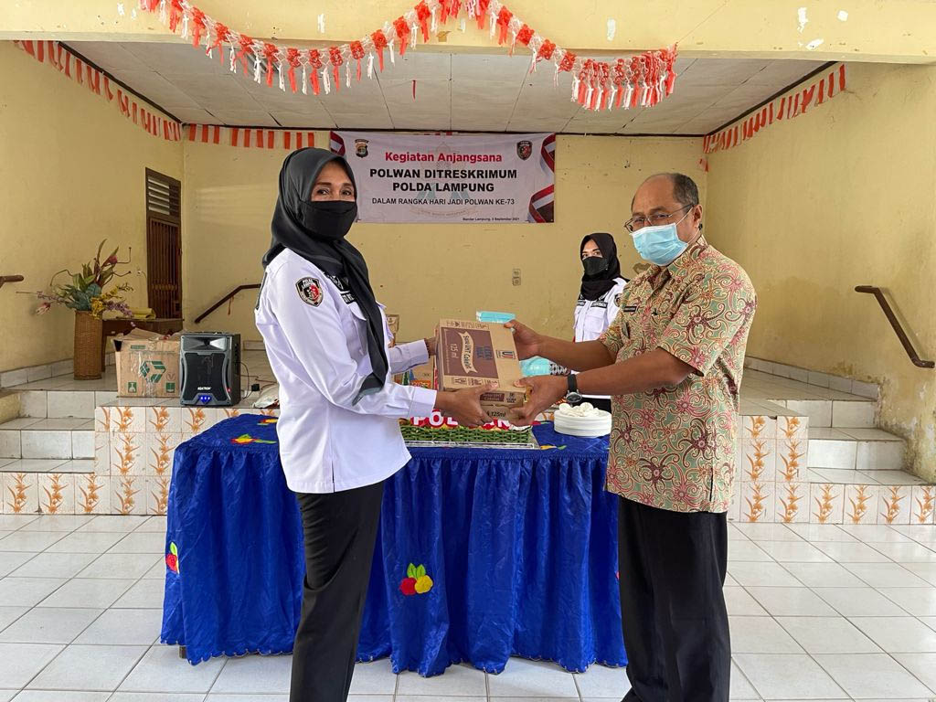 Natar, etalaseinfo.com (SMSI) – Polisi Wanita dari Ditreskrimum Polda Lampung sejumlah 18 Personil, melakukan kunjungan kepedulian Sosial dan Ucapan Syukur atas Hari Jadi Polwan ke-73, Dengan melaksanakan Anjangsana ke Panti Sosial Tresna Werda (PSTW) Natar Lampung Selatan dan Panti Asuhan Busaina Bandar Lampung. Pada Hari Jumat, 3 September 2021 pagi kemarin.