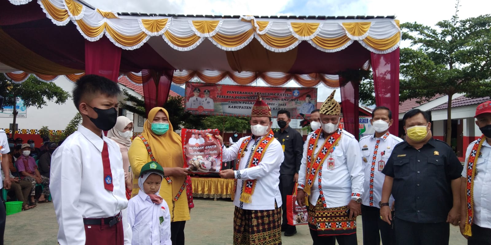 Menurut Wabup, sebagai wujud implementasi salah satu dari pitu (7) Program pada point ketiga (3) itu dengan cara melakukan penyerahan seragam gratis.
