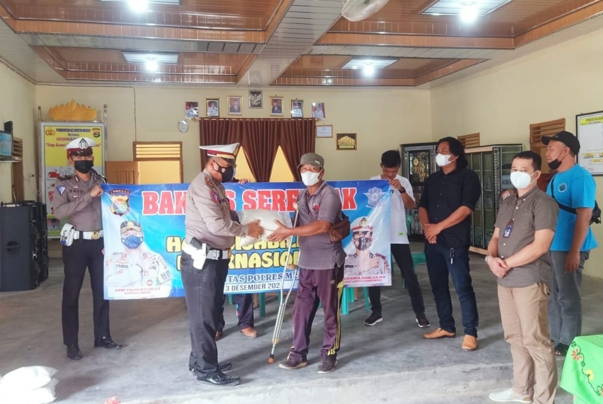 Giat Baksos serentak Satlantas Polres Mesuji kali ini, jelas Kanit Gakkum IPDA Sutrisno Mewakili Kasat Lantas Polres Mesuji IPTU Khoirul Bahri S.H, M.H di laksanakan dalam rangka memperingati Hari Disabilitas Internasional, dengan memberikan bantuan berupa Beras dan sembako, kepada beberapa Penyandang Disabilitas dan Korban Laka Lantas di Wilayah Hukum Polres Mesuji di Desa Wira Bangun, yaitu Kiswanto (40), M. Iksan (10), Lamasi Situmorang (49) dan Jefri (19).