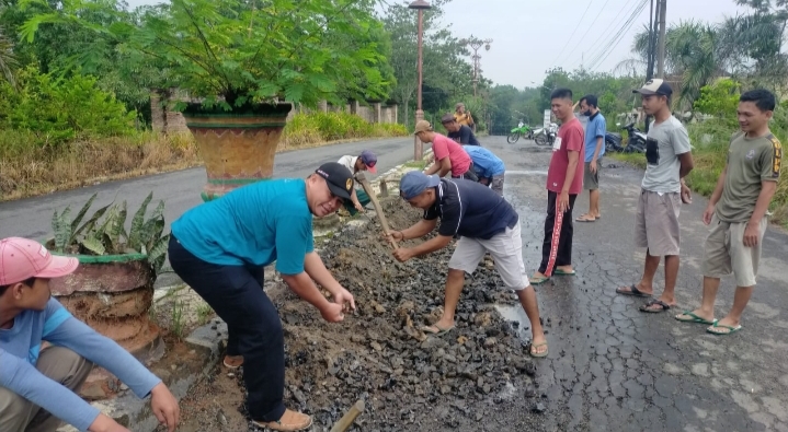 Warga Kelurahan Blambangan Umpu KM 2 Gotong Royong Perbaiki Jalan