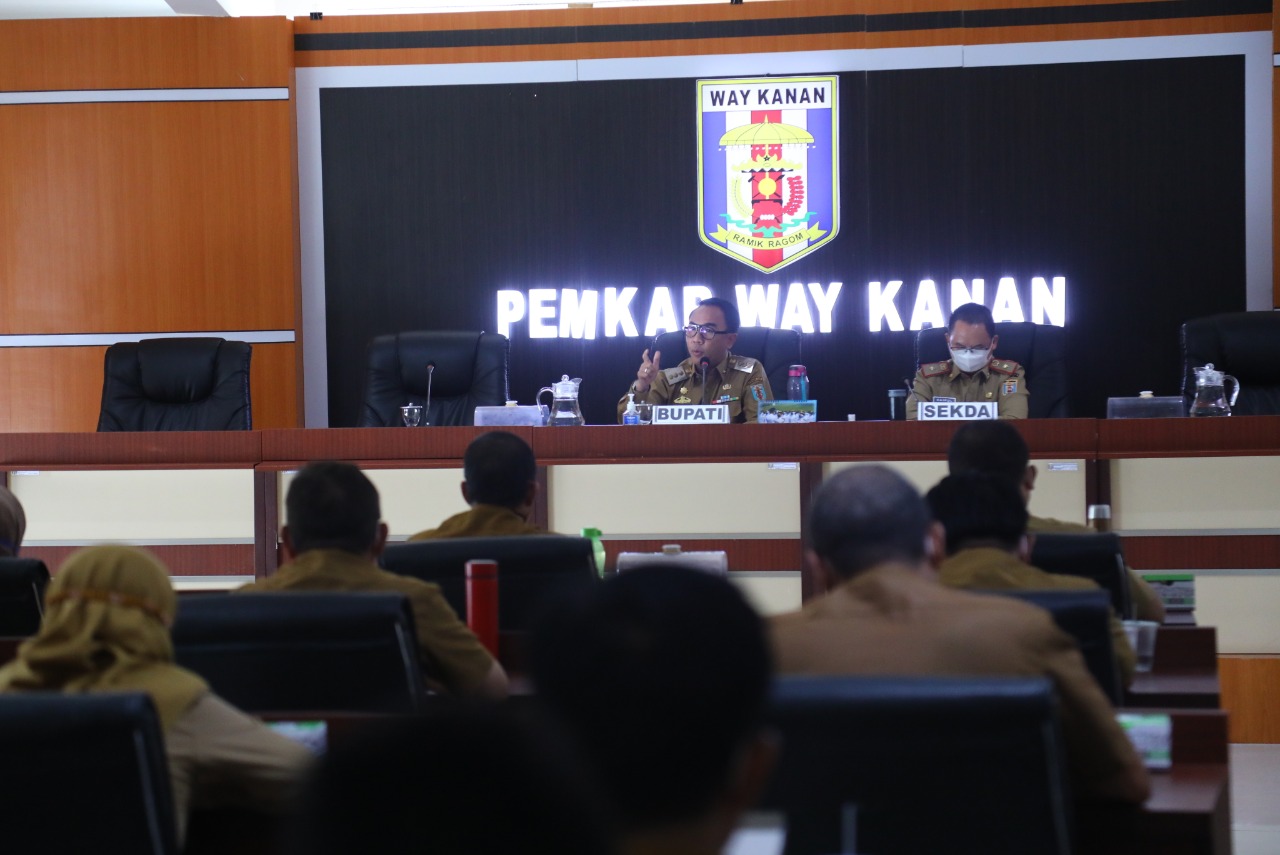 Way Kanan, etalaseinfo.com – Bupati H. Raden Adipati Surya, S.H.,M.M didampingi Sekretaris Daerah Kabupaten, Saipul, S.Sos.,M.IP memimpin Rapat Koordinasi Satuan Kerja Perangkat Daerah Kabupaten Way Kanan, Selasa (05/01/2021) kemarin di Ruang Rapat Utama Pemerintah Kabupaten setempat yang dihadiri oleh para Staf Ahlil Bupati, para Asisten Sekda, Kepala Inspektorat Daerah Kabupaten, Sekretaris DPRD, Satuan Kerja Perangkat Daerah, Bagian Setdakab, Direktur RSUD Zainal Abidin Pagar Alam serta Camat se-Kabupaten Way Kanan.