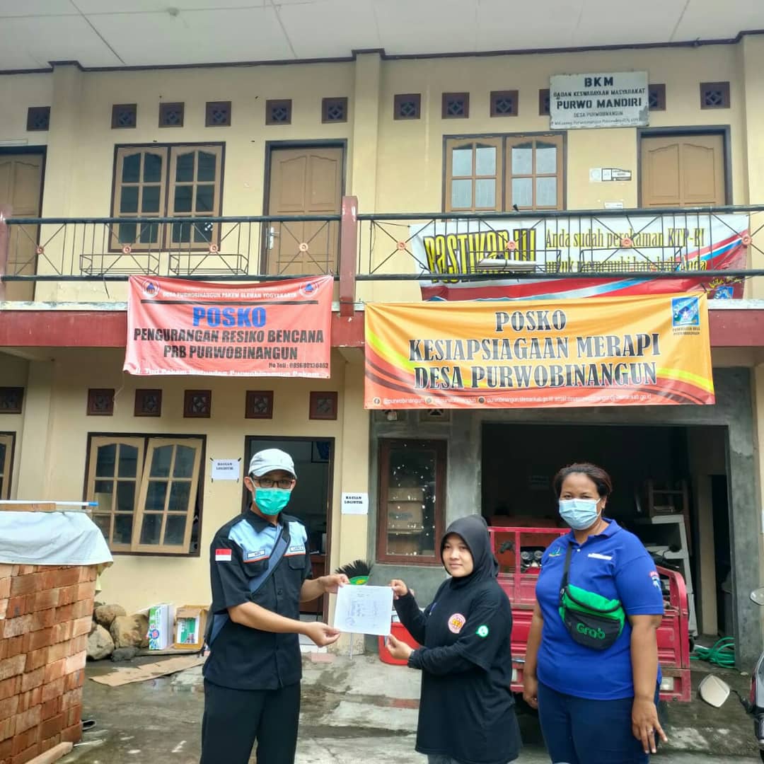 Social Volunteer Jogjakarta (SVJ), Grab Bike Grab Car (GBGC) dan Ojol Jogja Berbagi pada Kamis (4/2/21) sore menyerahkan sejumlah bantuan kepada para pengungsi yang berada di Barak Pengungsian Kelurahan Purwobinangun, Kepanewon Pakem, Kabupaten Sleman Yogyakarta.