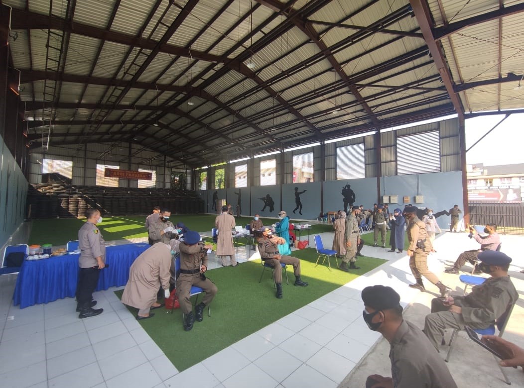 Bandar Lampung, etelaseinfo.com (SMSI) – Tim Kesehatan dari Satuan Brimob (Satbrimob) dan Bid Dokes Polda Lampung melaksanakan tes Swab Antigen kepada seluruh personil Sat Brimob Polda Lampung guna untuk mengetahui apakah terkena atau tidaknya Virus Corona Di lapangan tembak indoor Adhi Pradana Mako Sat Brimob Polda Lampung, Senin 05/07.