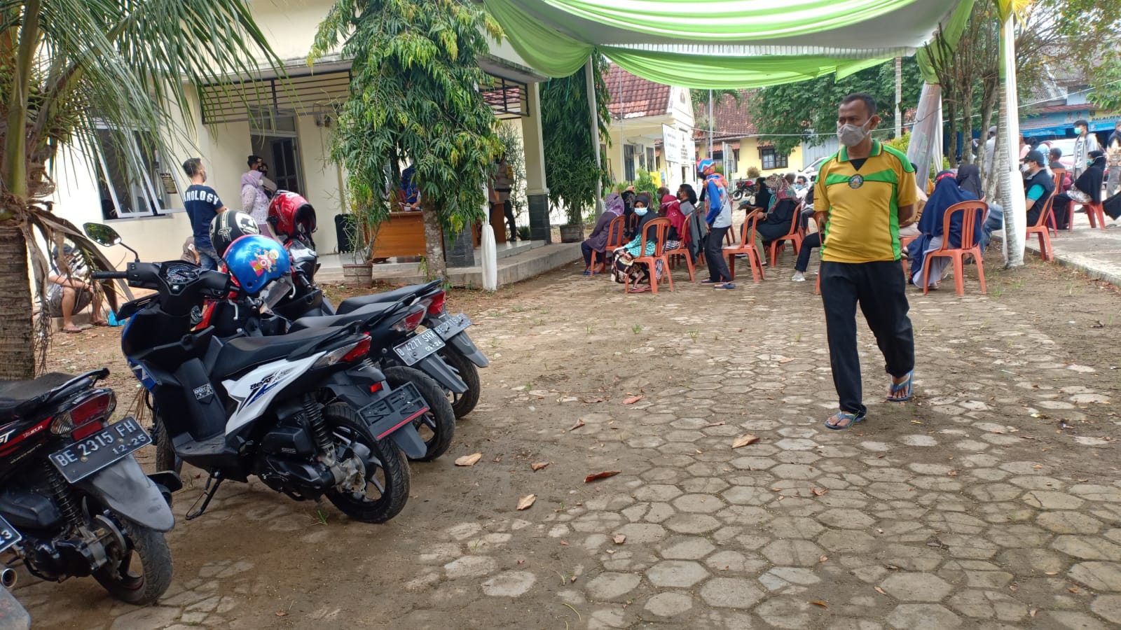 “Pembagian sertifikat atau kartu vaksinasi hanya kami berikan satu kartu, karena jaringan terganggu sehingga kami buat secara manual” kata petugas vaksin kepada awak media.