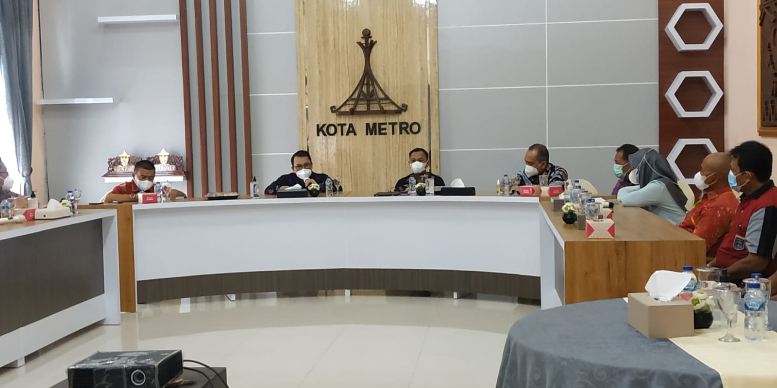 Metro, etalaseinfo (SMSI) – Walikota Metro Wahdi didampingi Wakil Walikota Qomaru Zaman dan Sekda Kota Metro Bangkit Haryo Utomo pimpin rapat pengarahan dan sharing dengan Camat dan lurah Metro Utara, terkait beberapa permasalan yang ada di kecamatan. Rapat berlangsung di Guest House Rumah Dinas Walikota Metro (05/11),