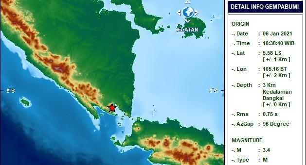 BACA JUGA: Getaran Terasa hingga Kemiling, Gempa Tektonik Magnitudo 3,4 Guncang Pesawaran