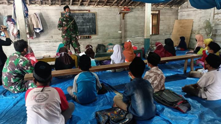 Kopda Kasturi dan Kopda Puntiono melaksanakan kegiatan mengajar ngaji di TPA RT 05 RW 03 Dusun Nglambangan.