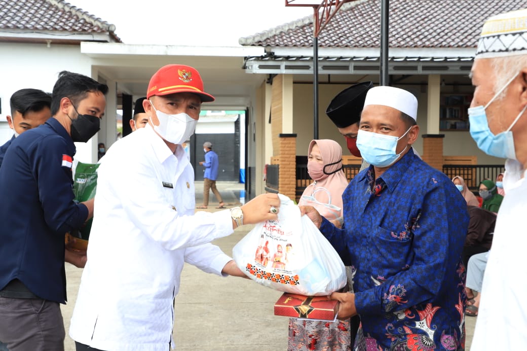 Selain itu, secara pribadi Bupati Parosil juga memberikan alat kelengkapan ibadah berupa Sarung dan Mukena kepada masyarakat penerima bantuan yang hadir.