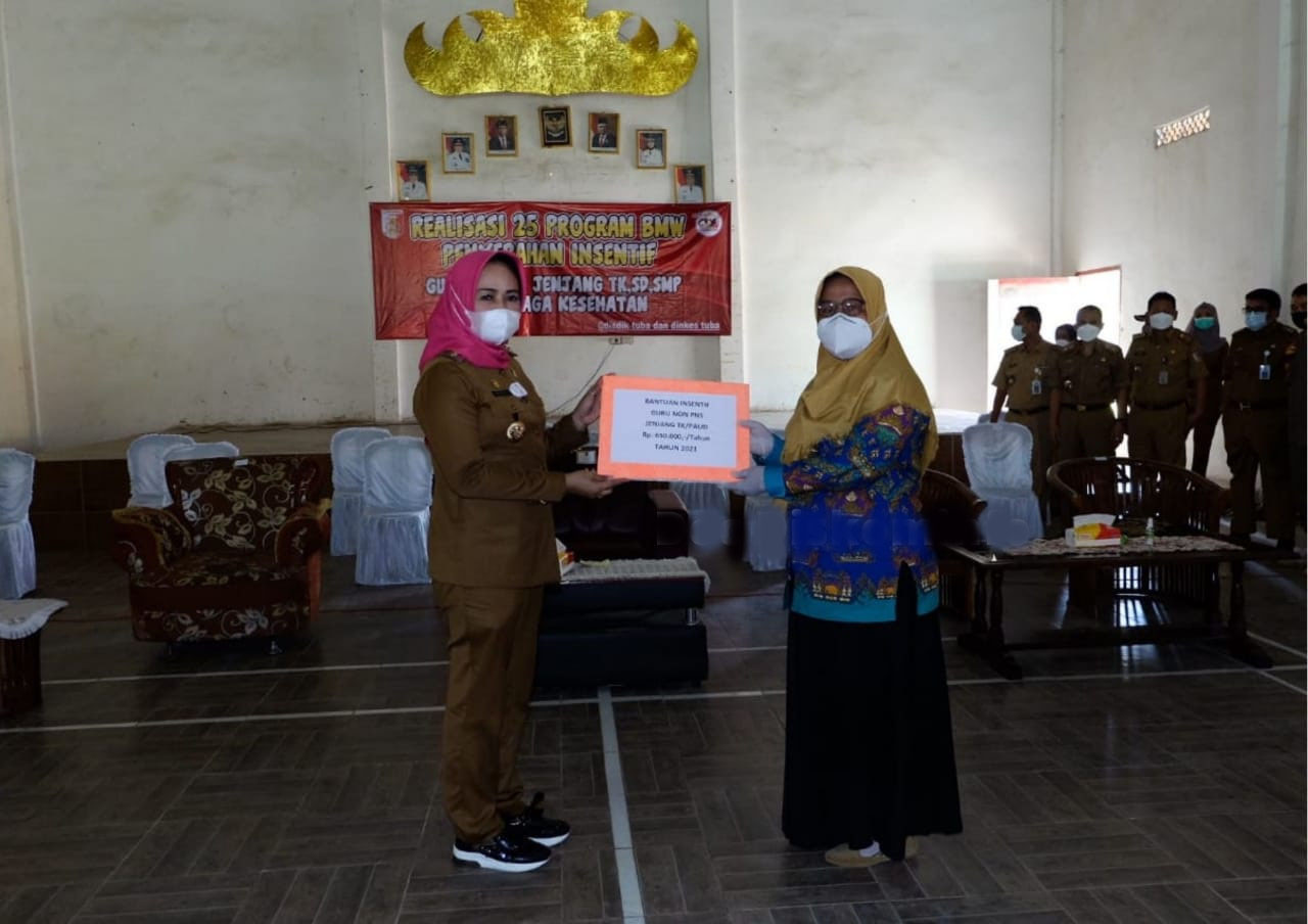 Dalam sambutannya, Bupati menuturkan bahwa Realisasi 25 program BMW pemberian insentif Guru Non PNS dan Tenaga Kesehatan ini telah terealisasi sejak saya memimpin kabupaten Tulang Bawang Tahun 2018 hingga saat ini.