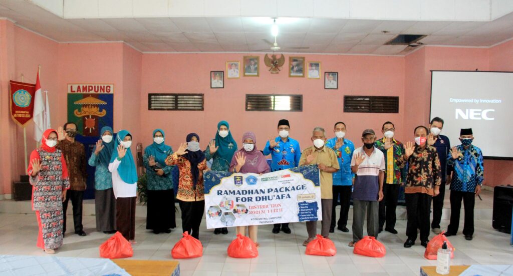 Dalam Bulan Suci Ramadan, TP PKK Kota Metro membagikan sembako secara simbolis kepada kaum Du’afa dengan tema Beramal di Bulan Ramadan, sebanyak 130 packages yang akan dibagikan adapun rincian bantuan terdiri dari, beras 5 (lima) kg, minyak goreng 1 L, Gula Pasir 1(satu) kg, Tepung terigu 1 kg, susu kental manis 1 (satu) kaleng.