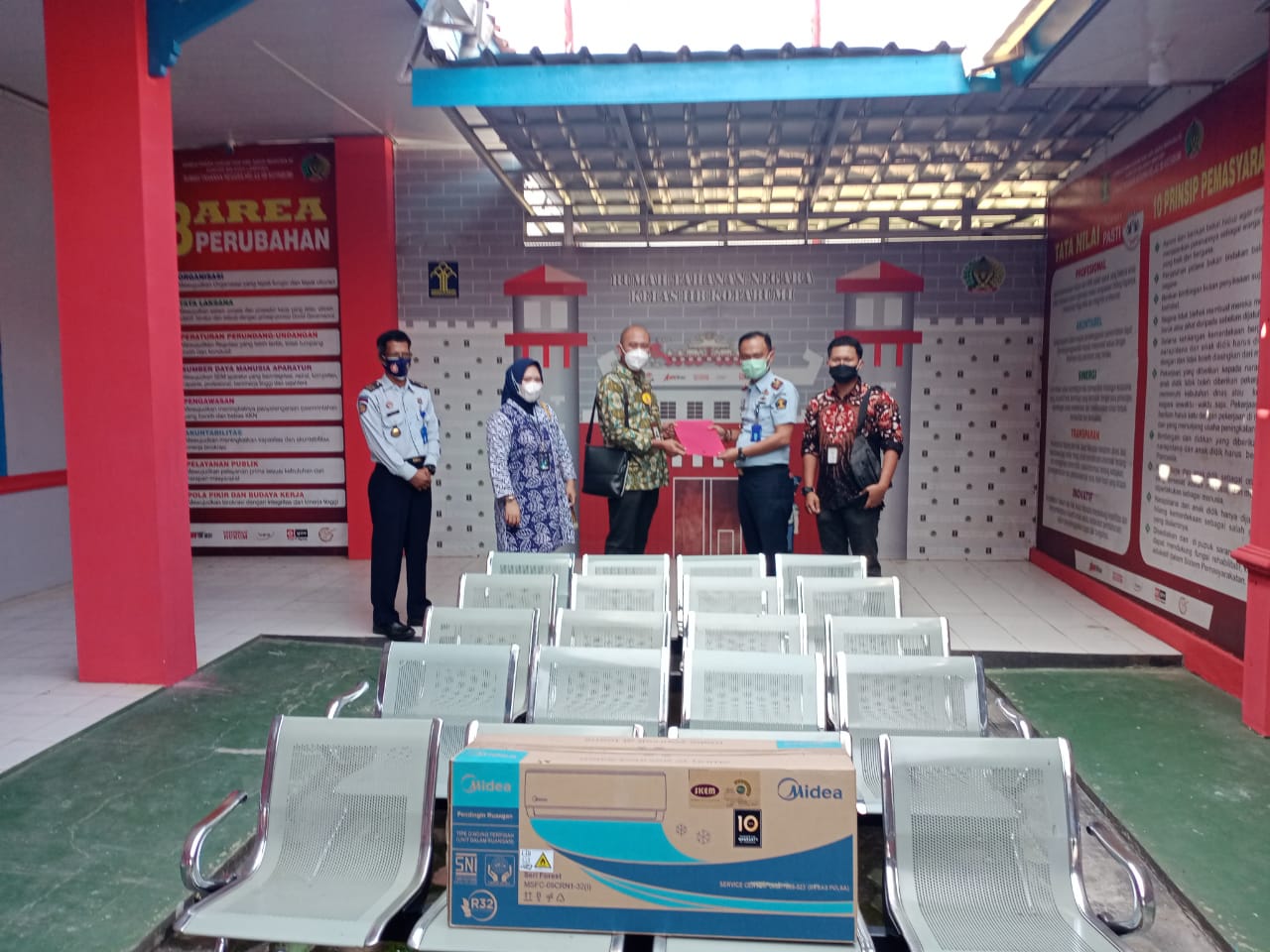 Bantuan kursi tunggu terutama untuk meningkatkan sarana layanan, yang akan ditempatkan di ruang tunggu penitipan barang dan kursi tunggu bagi WBP yang antri berobat di Poliklinik Rutan.(Rls)