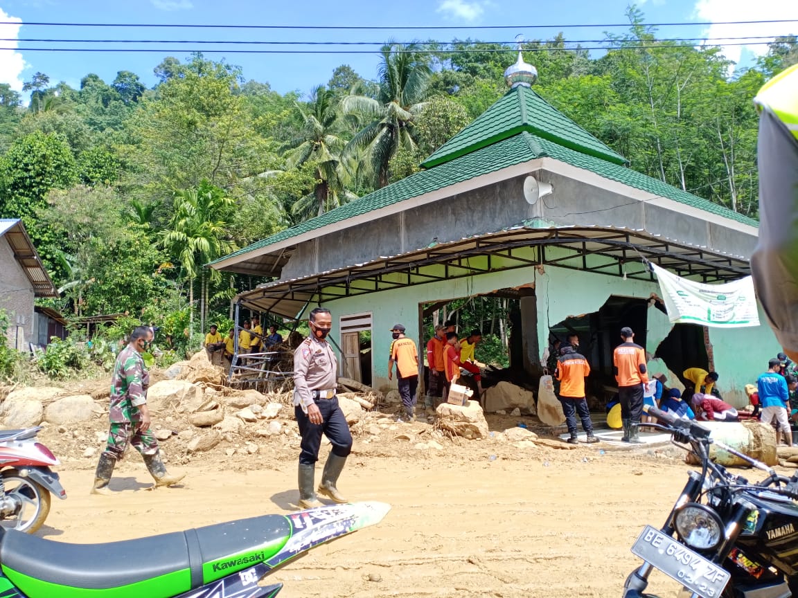 Kasubbag Humas Iptu M. Yusuf, SH mengatakan bahwa pihaknya menerjunkan personel gabungan guna membantu membersihkan material di rumah warga serta tempat ibadah pasca musibah Banjir dan longsor di wilayah tersebut.