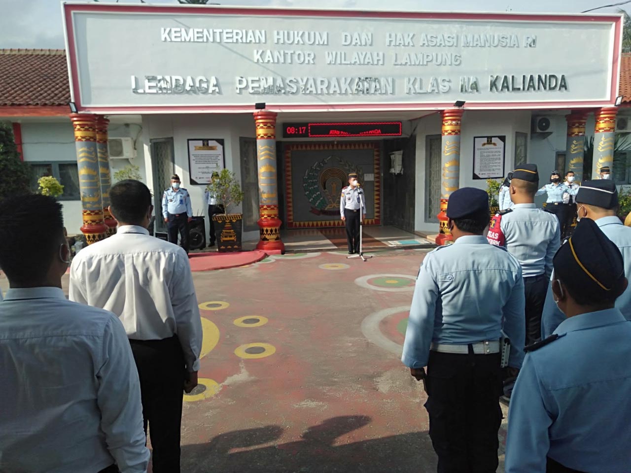 Penghargaan pegawai teladan diberikan langsung kepada Faza oleh Kepala Lapas Kalianda, Dr. Tetra Destorie saat Pelaksanaan Apel Pagi pegawai Lapas Kalianda, Senin (6/9). (Hms-J)