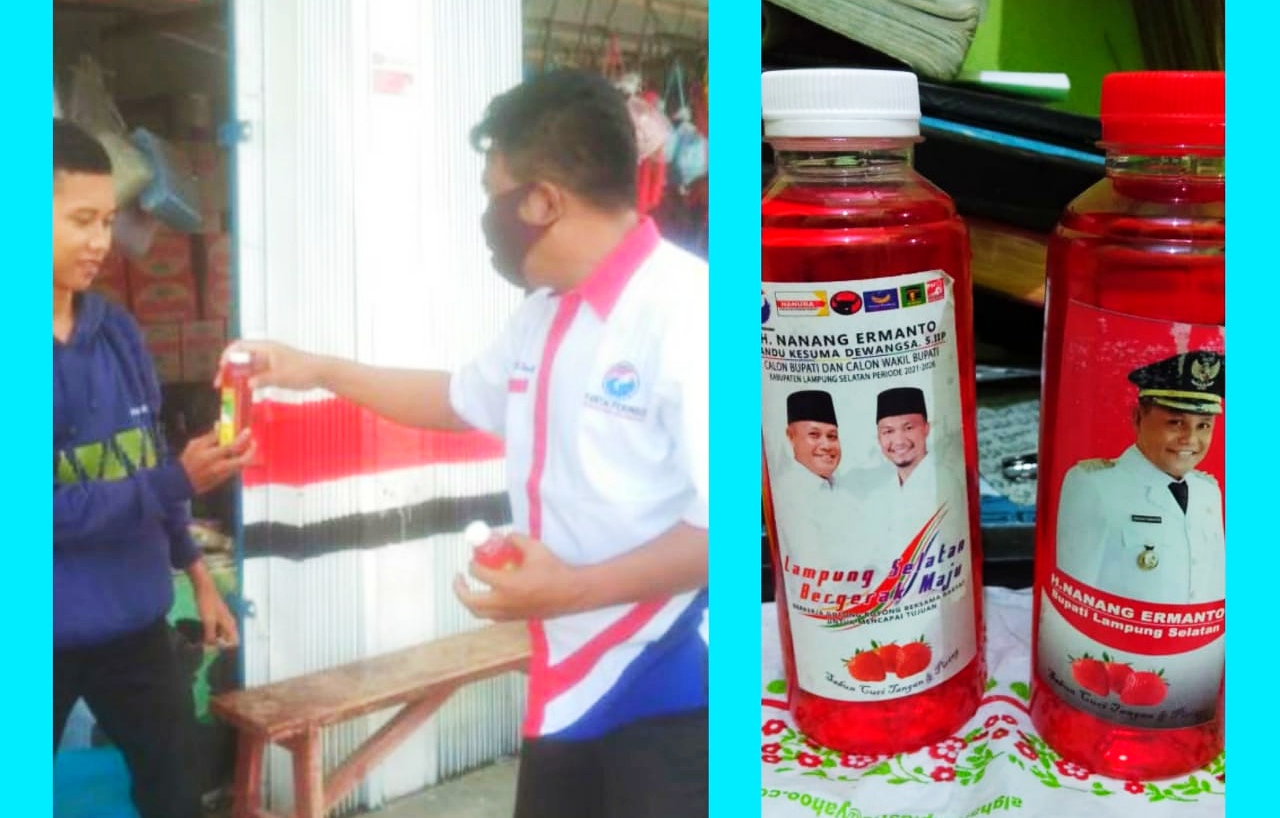 Sebelumnya, di sejumlah Kecamatan di Kabupaten Lampung Selatan beredar secara masif produk alkes dan PKRT berupa sabun cair. Beredarnya produk kesehatan ini disinyalir merupakan buah tangan dari salah satu tim sukses pasangan calon. Di kemasan produk tidak sama sekali mencantumkan informasi produsen, komposisi dan merk. Kemasan botol plastik itu hanya memuat foto salah satu pasangan calon foto calon incumbent yang masih menjabatmenjabat dan keterangan sabun cuci tangan dan piring.