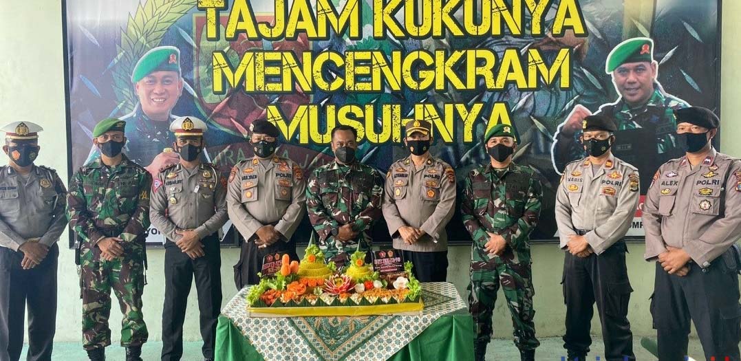 Pesawaran, etalaseinfo (SMSI) – Di Hari Ulang Tahun (HUT) Tentara Nasional Indonesia (TNI) ke-76, Polres Pesawaran dan Polsek jajaran mendatangi Kompi Senapan A Yonif 143/TWEJ Gedongtataan dengan membawa nasi tumpeng.