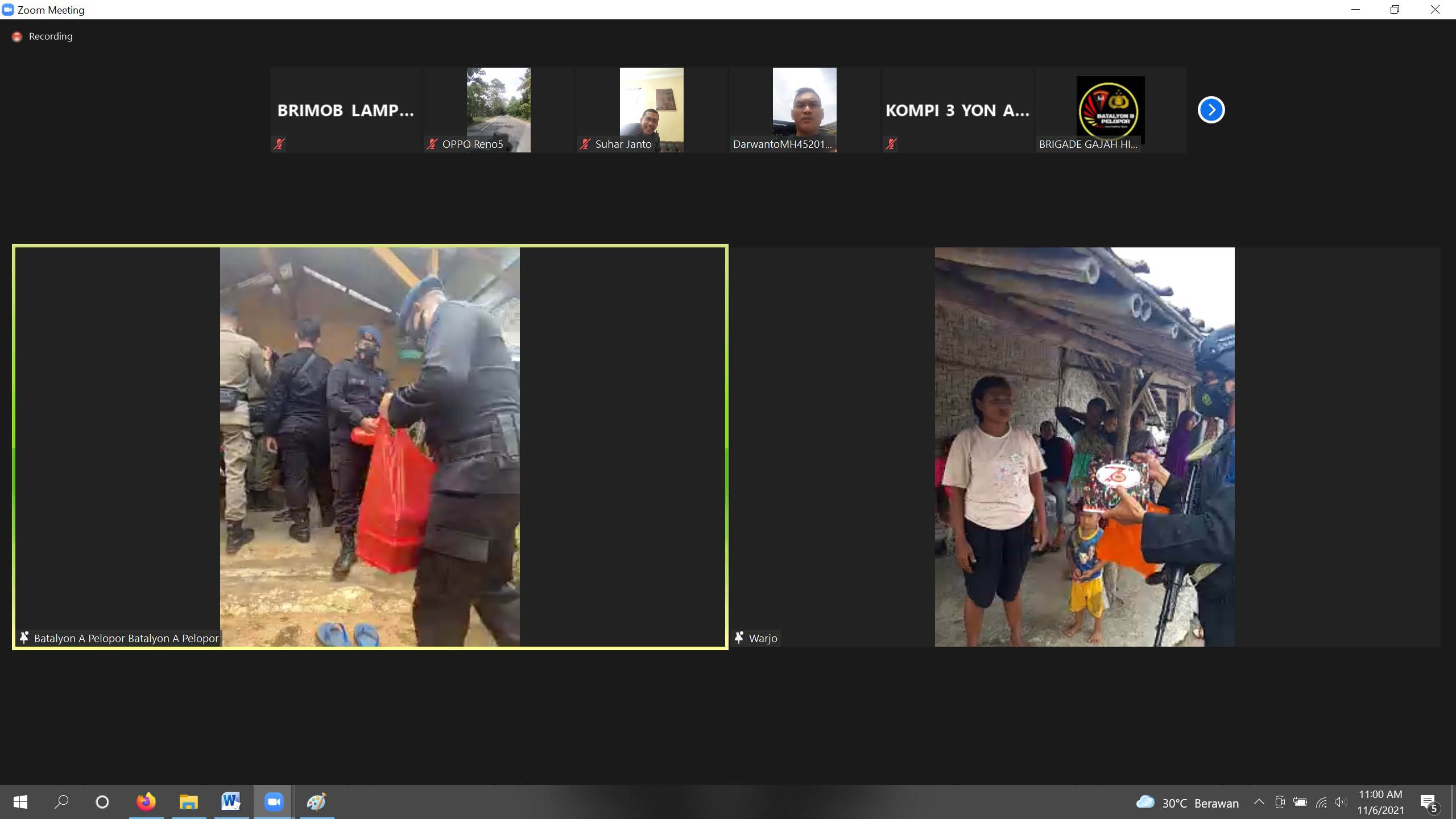 Kegiatan ini sebagai bentuk rasa peduli serta bakti Brimob Lampung untuk masyarakat. Adapun kegiatan bakti social membagikan paket makanan ini dilaksanakan secara serentak di wilayah Lampung oleh masing masing Jajaran Sat Brimob Polda Lampung , yang mana dalam kegiatan baksos ini juga terpatau langsung oleh komandan satuan melalui aplikasi zoom.