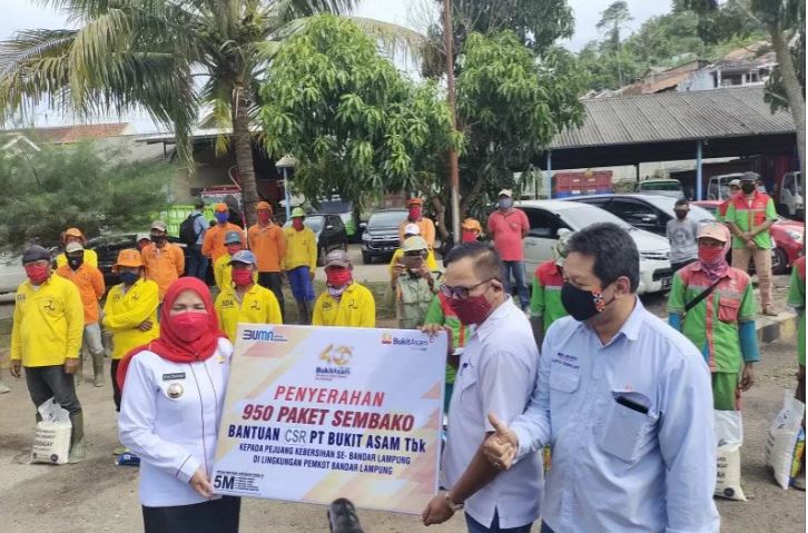 Bandarlampung – Pemerintah Kota Bandarlampung menyalurkan bantuan 950 paket sembako yang merupakan bagian dari CSR dari PT Bukit Asam (BA) kepada petugas kebersihan yang bertugas di Dinas Lingkungan Hidup dan Pekerjaan Umum.